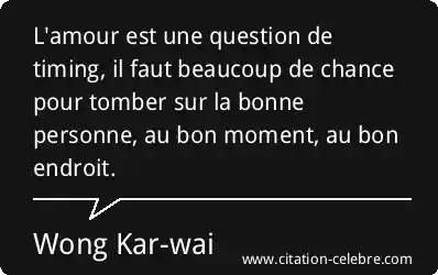L'amour est une question de timing, il faut beaucoup de chance pour tomber sur la bonne personne, au bon moment, au bon endroit.