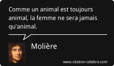 Comme un animal est toujours animal, la femme ne sera jamais qu'animal.