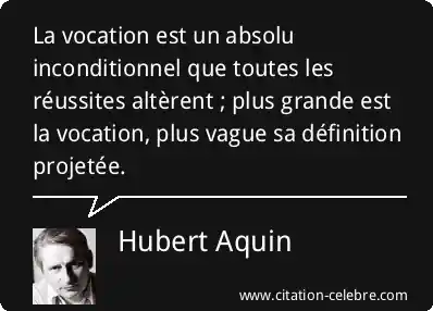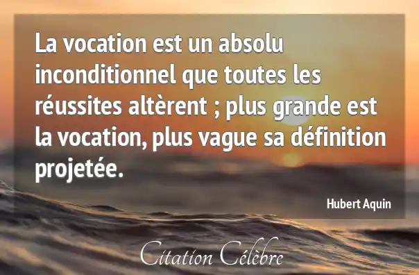 La vocation est un absolu inconditionnel que toutes les réussites altèrent ; plus grande est la vocation, plus vague sa définition projetée.