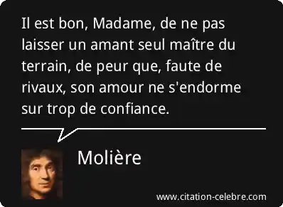 Il est bon, Madame, de ne pas laisser un amant seul maître du terrain, de peur que, faute de rivaux, son amour ne s'endorme sur trop de confiance.