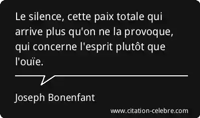 Le silence, cette paix totale qui arrive plus qu'on ne la provoque, qui concerne l'esprit plutôt que l'ouïe.