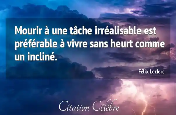 Mourir à une tâche irréalisable est préférable à vivre sans heurt comme un incliné.