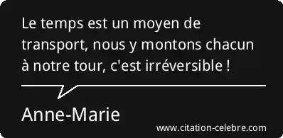 Le temps est un moyen de transport, nous y montons chacun à notre tour, c'est irréversible !
