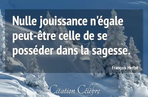 Nulle jouissance n'égale peut-être celle de se posséder dans la sagesse.