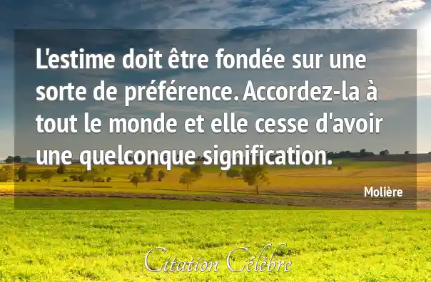 L'estime doit être fondée sur une sorte de préférence. Accordez-la à tout le monde et elle cesse d'avoir une quelconque signification.