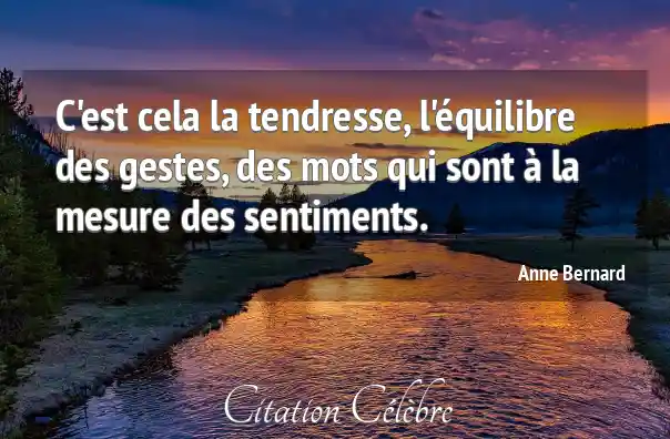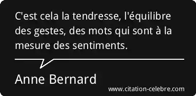 C'est cela la tendresse, l'équilibre des gestes, des mots qui sont à la mesure des sentiments.