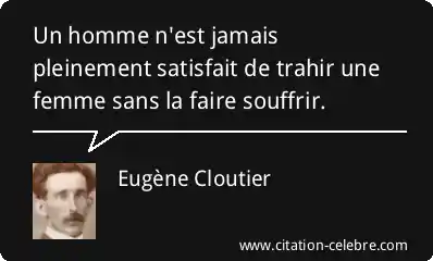Citation Eugène Cloutier femme : Un homme n'est jamais pleinement satisfait de trahir une femme...