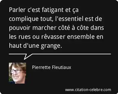 Parler c'est fatigant et ça complique tout, l'essentiel est de pouvoir marcher côté à côte dans les rues ou rêvasser ensemble en haut d'une grange.
