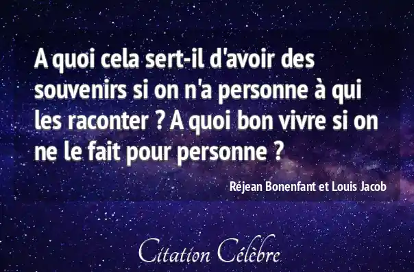 A quoi cela sert-il d'avoir des souvenirs si on n'a personne à qui les raconter ? A quoi bon vivre si on ne le fait pour personne ?