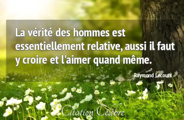 La vérité des hommes est essentiellement relative, aussi il faut y croire et l'aimer quand même.