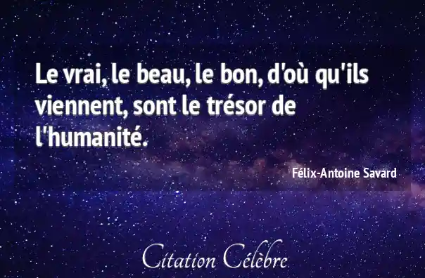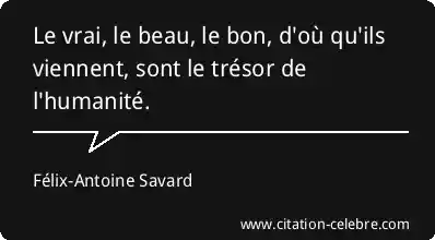 Le vrai, le beau, le bon, d'où qu'ils viennent, sont le trésor de l'humanité.