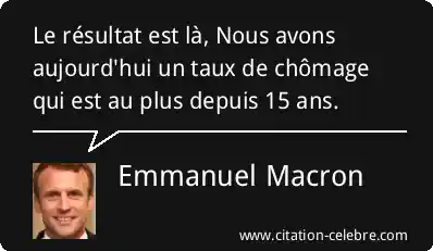 Le résultat est là, Nous avons aujourd'hui un taux de chômage qui est au plus depuis 15 ans.