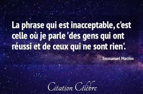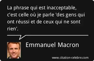 La phrase qui est inacceptable, c'est celle où je parle 'des gens qui ont réussi et de ceux qui ne sont rien'.