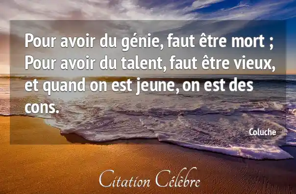 Pour avoir du génie, faut être mort ; Pour avoir du talent, faut être vieux, et quand on est jeune, on est des cons.