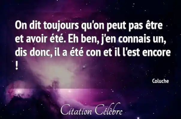On dit toujours qu'on peut pas être et avoir été. Eh ben, j'en connais un, dis donc, il a été con et il l'est encore !