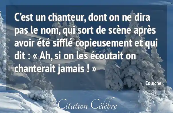 C'est un chanteur, dont on ne dira pas le nom, qui sort de scène après avoir été sifflé copieusement et qui dit : « Ah, si on les écoutait on chanterait jamais ! »