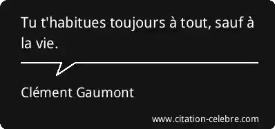 Citation Clément Gaumont vie : Tu t'habitues toujours à tout, sauf à la vie....