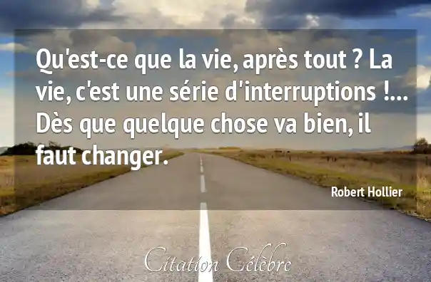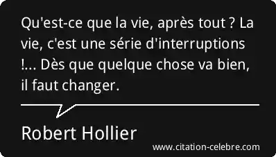 Qu'est-ce que la vie, après tout ? La vie, c'est une série d'interruptions !... Dès que quelque chose va bien, il faut changer.