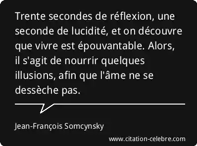 Trente secondes de réflexion, une seconde de lucidité, et on découvre que vivre est épouvantable. Alors, il s'agit de nourrir quelques illusions, afin que l'âme ne se dessèche pas.