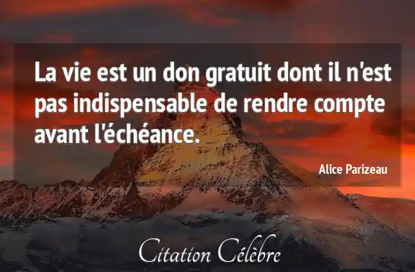 La vie est un don gratuit dont il n'est pas indispensable de rendre compte avant l'échéance.
