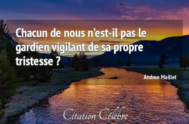 Chacun de nous n'est-il pas le gardien vigilant de sa propre tristesse ?