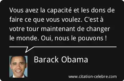 Vous avez la capacité et les dons de faire ce que vous voulez. C'est à votre tour maintenant de changer le monde. Oui, nous le pouvons !