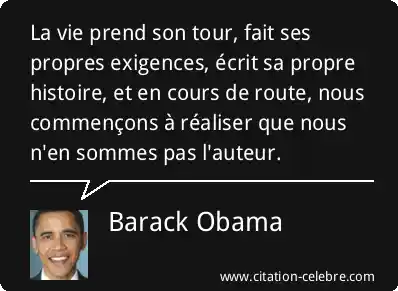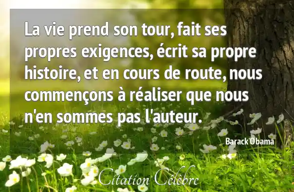 La vie prend son tour, fait ses propres exigences, écrit sa propre histoire, et en cours de route, nous commençons à réaliser que nous n'en sommes pas l'auteur.