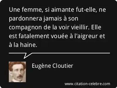 Une femme, si aimante fut-elle, ne pardonnera jamais à son compagnon de la voir vieillir. Elle est fatalement vouée à l'aigreur et à la haine.