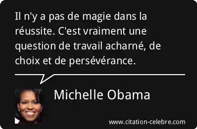 Cette puissante déclaration de Michelle Obama signifie que la réussite n'est pas le fruit du hasard, d'une chance miraculeuse ou d'un don inné. Elle insiste sur le fait que l'atteinte de vos objectifs est la conséquence directe d'une approche délibérée et constante. En d'autres termes, pour réussir, il faut s'engager dans un processus exigeant qui repose sur des actions concrètes et mesurables plutôt que sur l'attente d'une intervention "magique".
