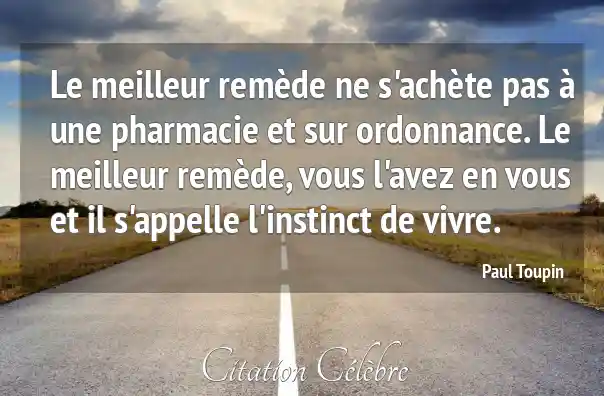 Le meilleur remède ne s'achète pas à une pharmacie et sur ordonnance. Le meilleur remède, vous l'avez en vous et il s'appelle l'instinct de vivre.