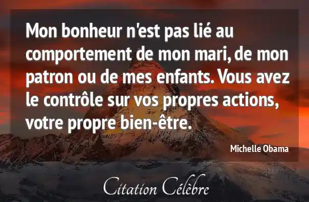 Mon bonheur n'est pas lié au comportement de mon mari, de mon patron ou de mes enfants. Vous avez le contrôle sur vos propres actions, votre propre bien-être.