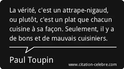 La vérité, c'est un attrape-nigaud, ou plutôt, c'est un plat que chacun cuisine à sa façon. Seulement, il y a de bons et de mauvais cuisiniers.