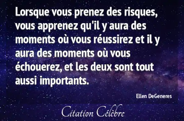 Lorsque vous prenez des risques, vous apprenez qu'il y aura des moments où vous réussirez et il y aura des moments où vous échouerez, et les deux sont tout aussi importants.