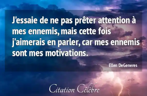 J'essaie de ne pas prêter attention à mes ennemis, mais cette fois j'aimerais en parler, car mes ennemis sont mes motivations.
