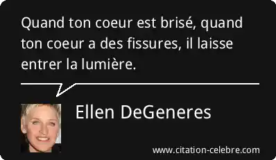 Quand ton coeur est brisé, quand ton coeur a des fissures, il laisse entrer la lumière.