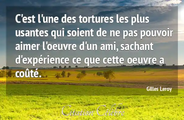 C'est l'une des tortures les plus usantes qui soient de ne pas pouvoir aimer l'oeuvre d'un ami, sachant d'expérience ce que cette oeuvre a coûté.