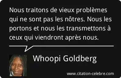 Nous traitons de vieux problèmes qui ne sont pas les nôtres. Nous les portons et nous les transmettons à ceux qui viendront après nous.