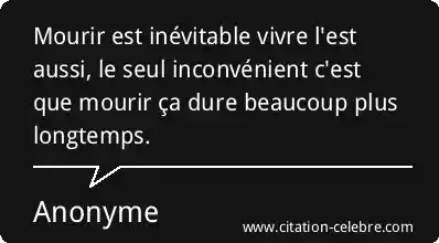 Mourir est inévitable vivre l'est aussi, le seul inconvénient c'est que mourir ça dure beaucoup plus longtemps.