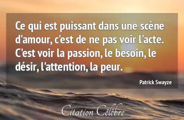 Ce qui est puissant dans une scène d'amour, c'est de ne pas voir l'acte. C'est voir la passion, le besoin, le désir, l'attention, la peur.