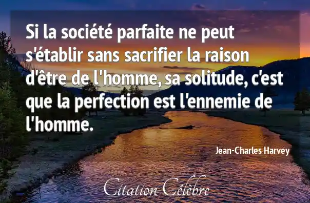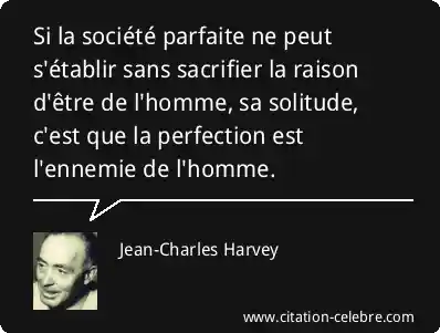 Si la société parfaite ne peut s'établir sans sacrifier la raison d'être de l'homme, sa solitude, c'est que la perfection est l'ennemie de l'homme.
