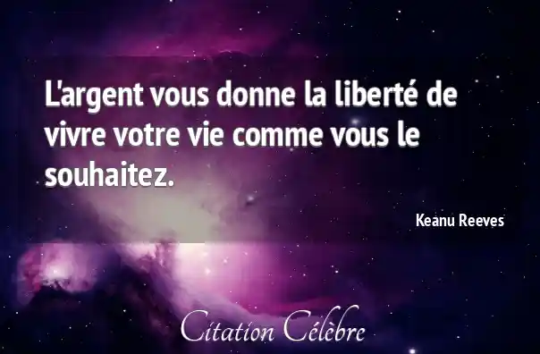 L'argent vous donne la liberté de vivre votre vie comme vous le souhaitez.