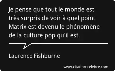 Je pense que tout le monde est très surpris de voir à quel point Matrix est devenu le phénomène de la culture pop qu'il est.