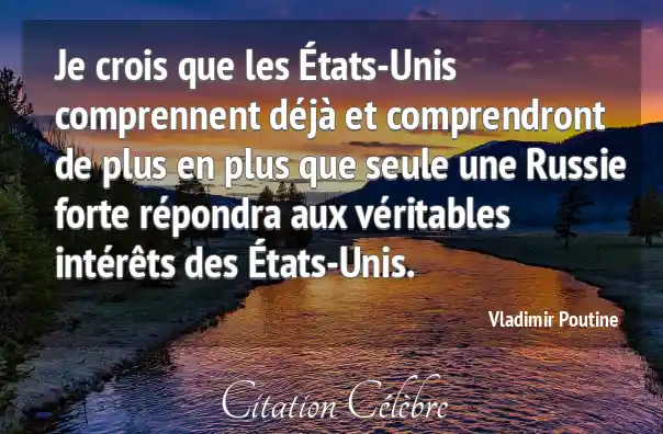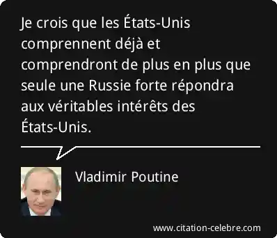 Je crois que les États-Unis comprennent déjà et comprendront de plus en plus que seule une Russie forte répondra aux véritables intérêts des États-Unis.