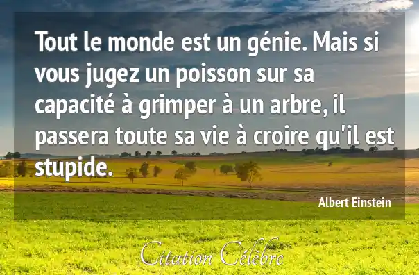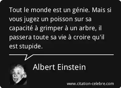 Tout le monde est un génie. Mais si vous jugez un poisson sur sa capacité à grimper à un arbre, il passera toute sa vie à croire qu'il est stupide.