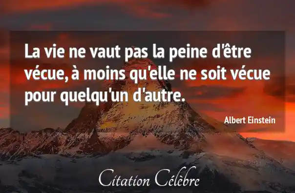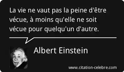 Cette puissante déclaration d'Albert Einstein suggère que l'existence individuelle prend sa véritable signification et sa valeur la plus profonde lorsqu'elle est dédiée ou orientée vers le bien-être, le service ou l'amour d'autrui. La vie solitaire ou purement égoïste est, selon lui, intrinsèquement vide ou insuffisante. Le sens de la vie ne se trouve pas dans la simple survie ou l'accumulation personnelle, mais dans la connexion et la contribution aux autres.