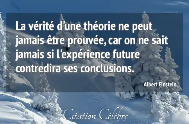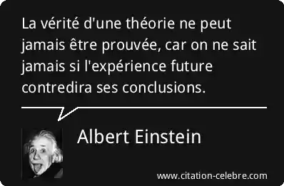 La vérité d'une théorie ne peut jamais être prouvée, car on ne sait jamais si l'expérience future contredira ses conclusions.
