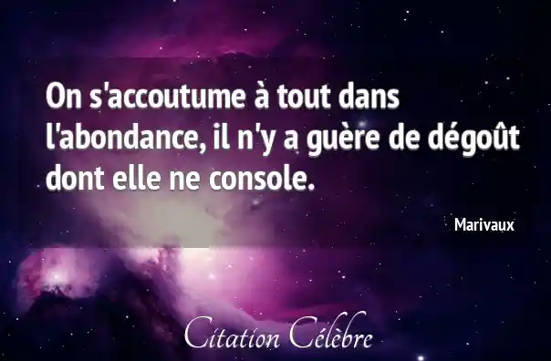 On s'accoutume à tout dans l'abondance, il n'y a guère de dégoût dont elle ne console.