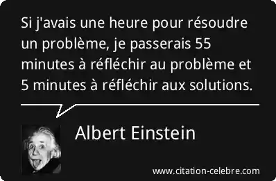 - Le raccourci mène à l'erreur : L'empressement à trouver une solution (les 5 minutes) est inutile si l'on n'a pas pris le temps de bien cerner le défi (les 55 minutes).