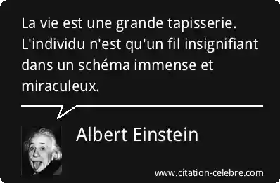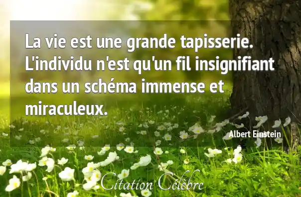 La vie est une grande tapisserie. L'individu n'est qu'un fil insignifiant dans un schéma immense et miraculeux.
