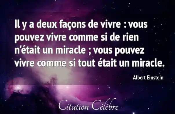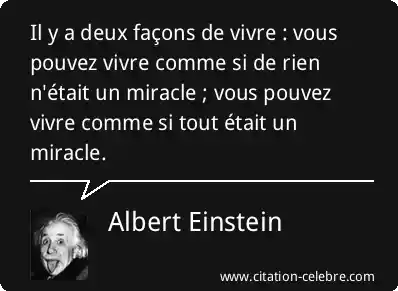 Il y a deux façons de vivre : vous pouvez vivre comme si de rien n'était un miracle ; vous pouvez vivre comme si tout était un miracle.
